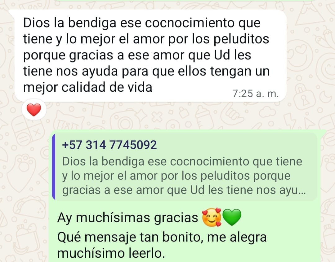 ¡Soy la creadora de los recetarios MÁS AMOROSOS y completos de Colombia para alimentación natural canina. He ayudado a MÁS DE 2,500 FAMILIAS COLOMBIANAS a transformar completamente la salud de sus perros con alimentación casera y natural. Este proyecto nació desde mi deseo PROFUNDO de ayudar a familias que, como TÚ, aman a sus peluditos como hijos y quieren cuidarlos de forma más natural, sin químicos innecesarios ni alimentos ultraprocesados que los están enfermando lentamente día tras día.