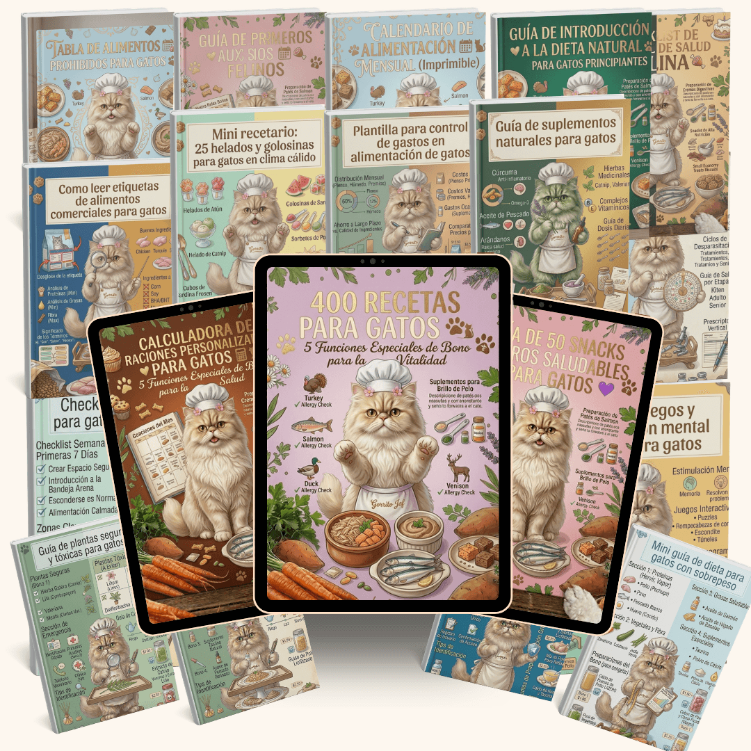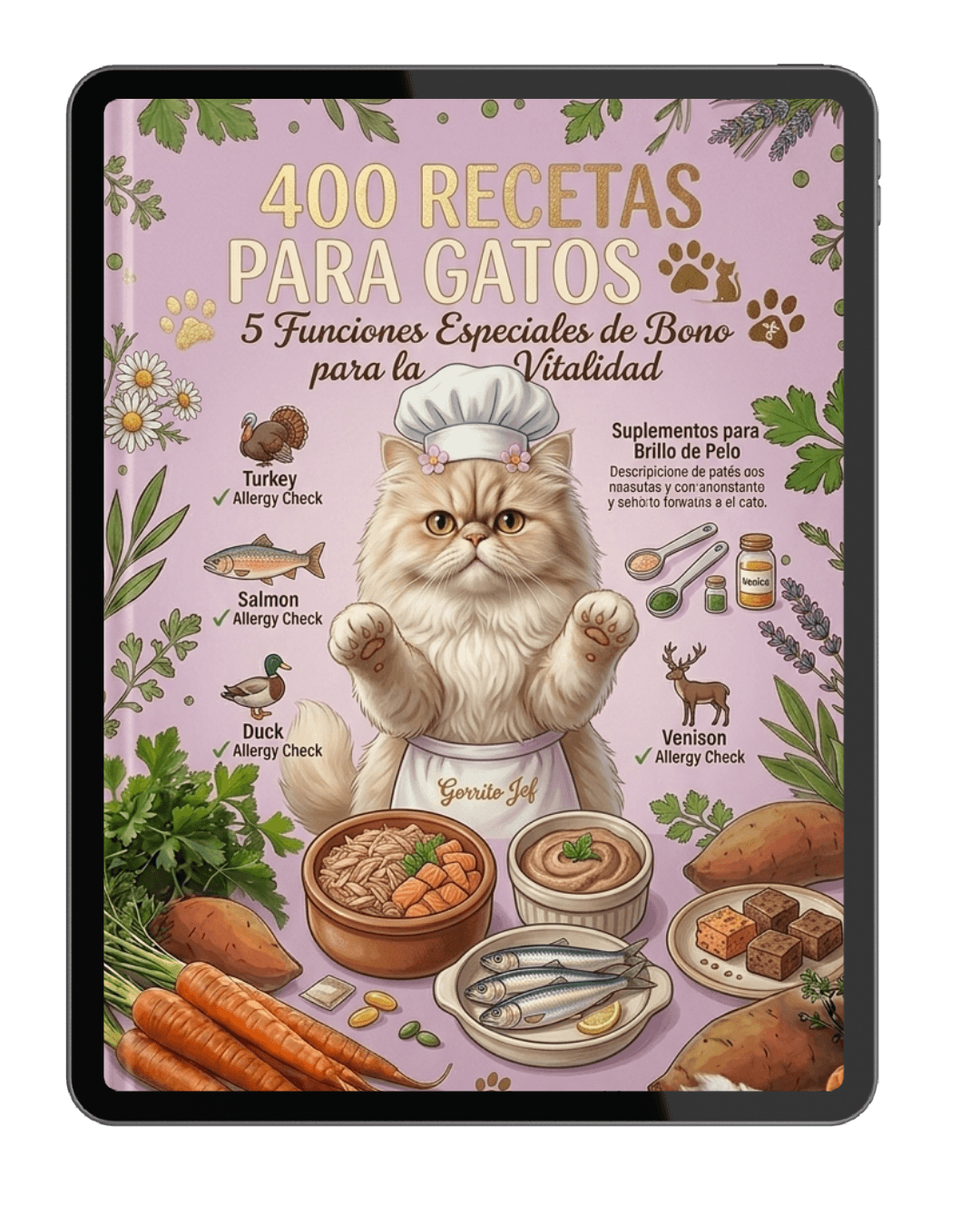 Es una guía completa con 400 recetas caseras para mejorar la salud y nutrición de tu gato.