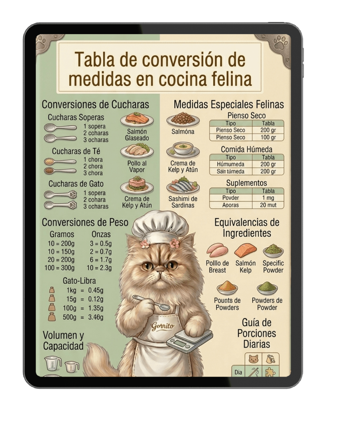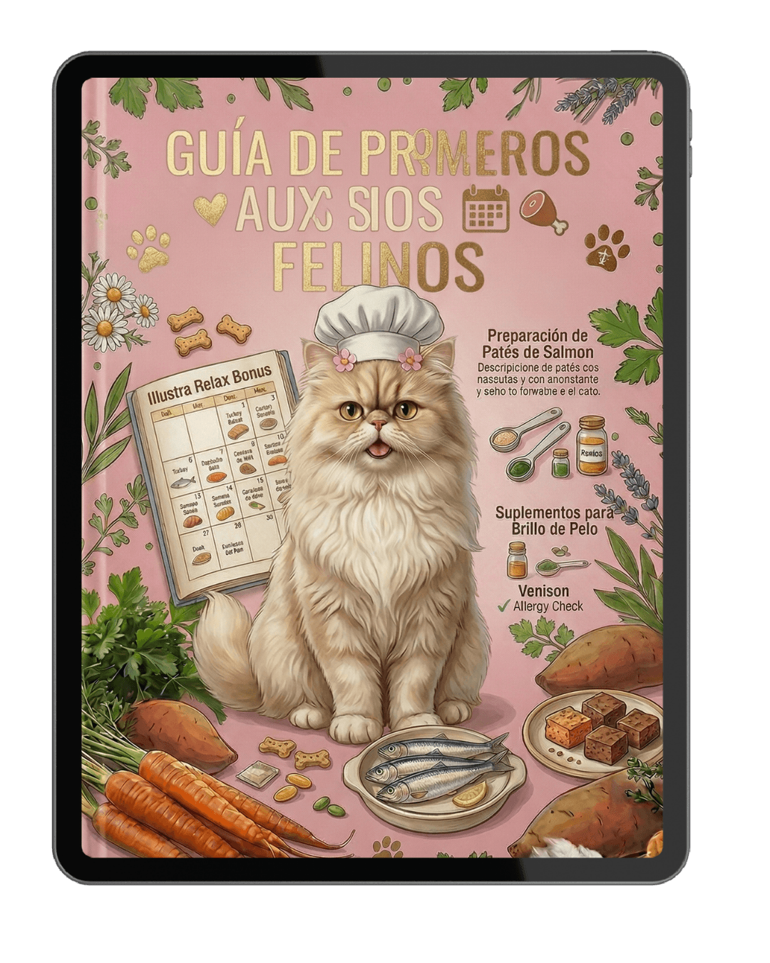 Incluye una calculadora de porciones diarias y manual de primeros auxiliares para que tengas todo lo necesario para cuidar de tu gato.