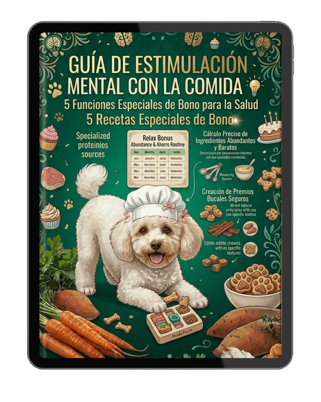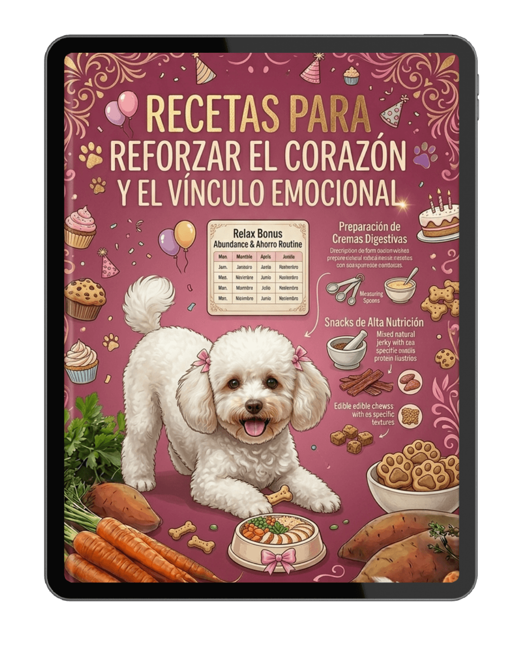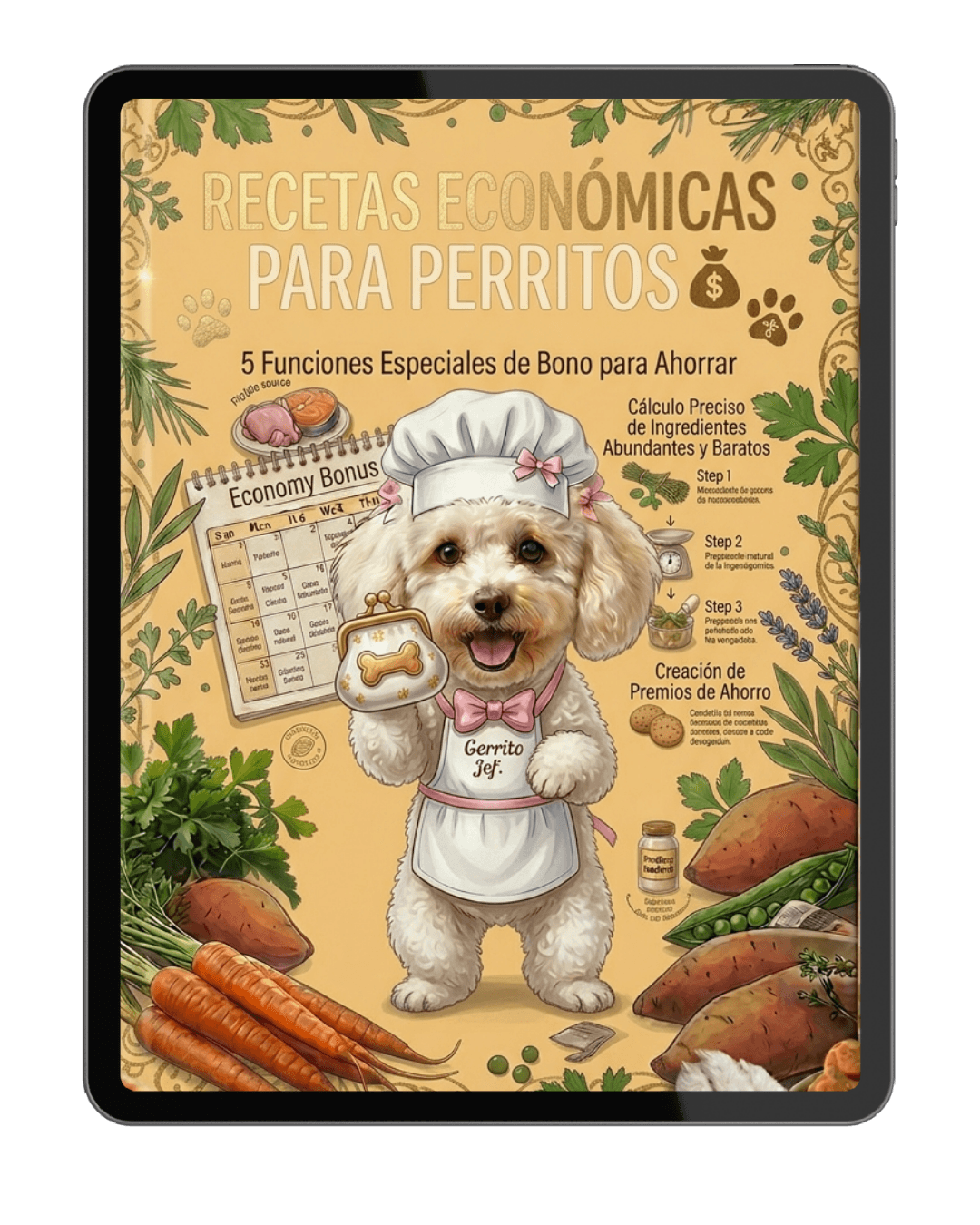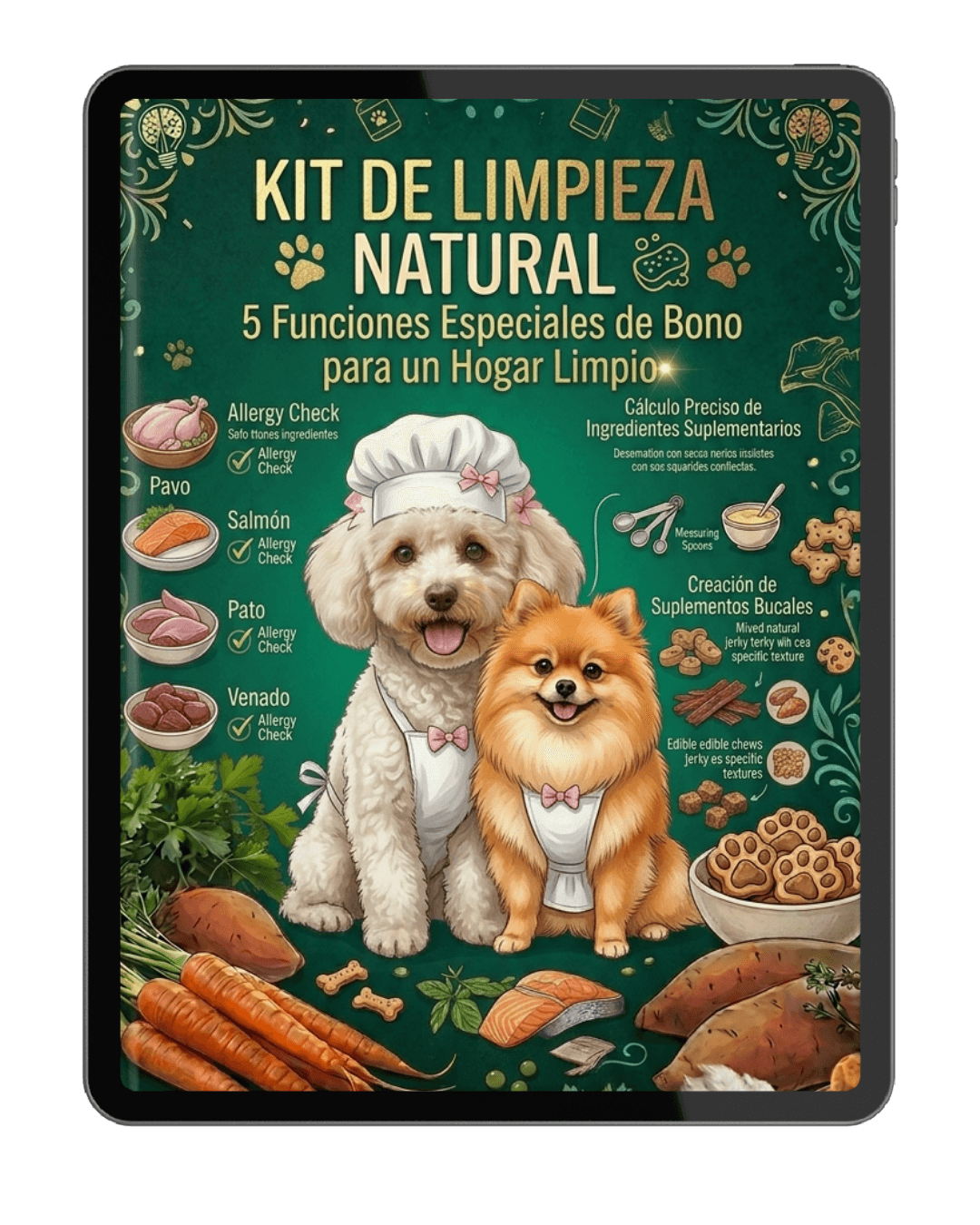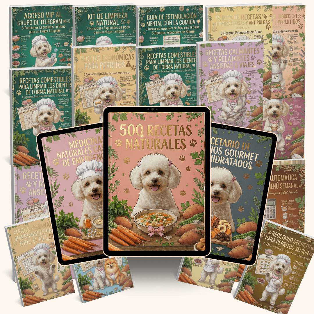 Un recetario digital COMPLETÍSIMO con 500 recetas saludables y fáciles de preparar para tu perro, divididas en snacks crocantes, comidas principales completas y postres deliciosos. Además, incluye 20 bonos exclusivos que cubren absolutamente TODO: desde remedios naturales de emergencia hasta calculadora de porciones automática.