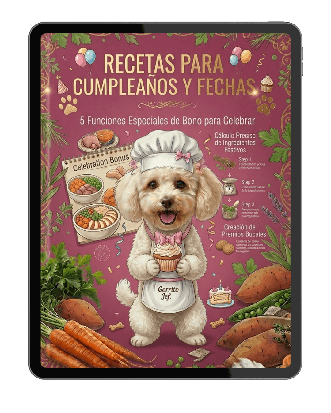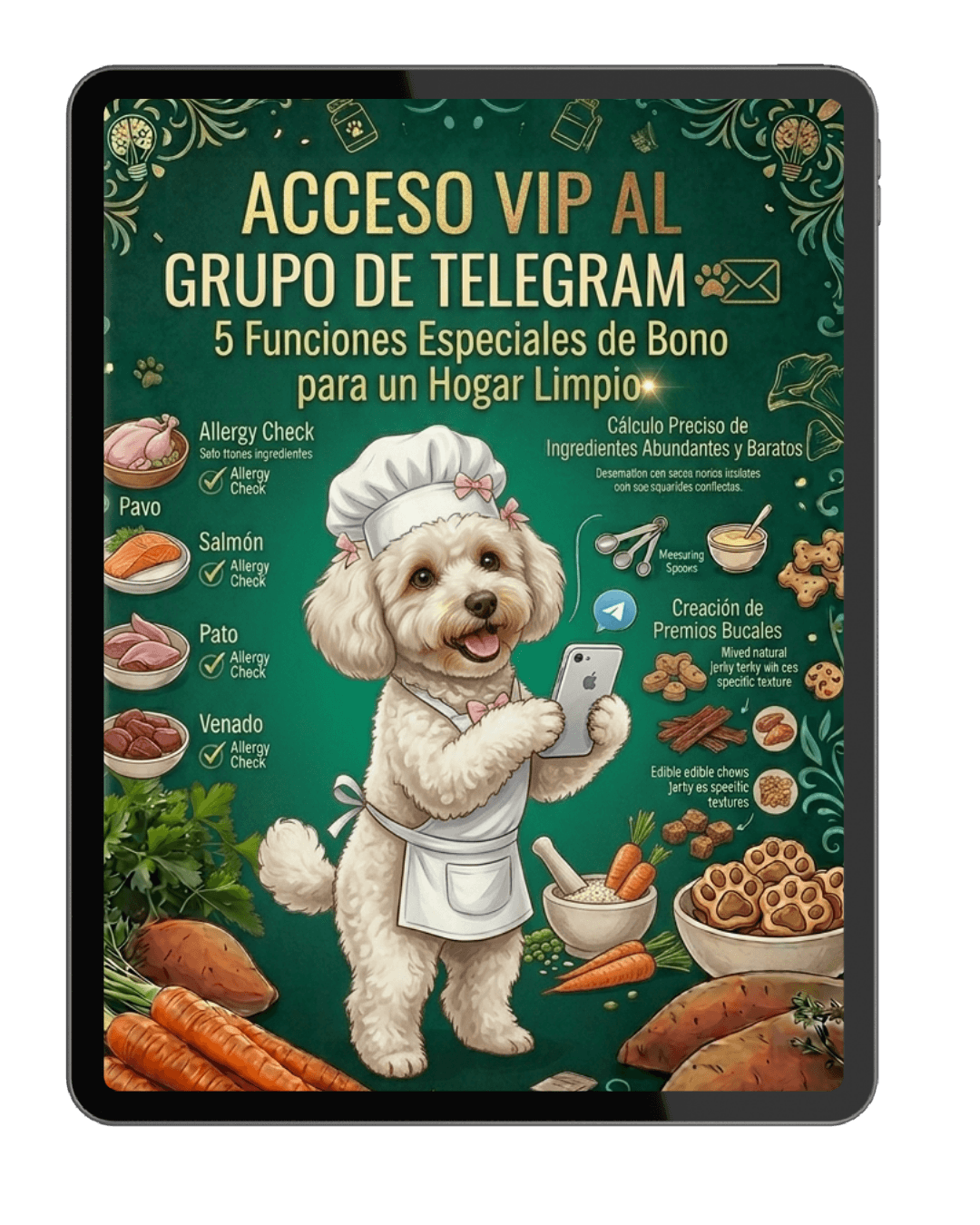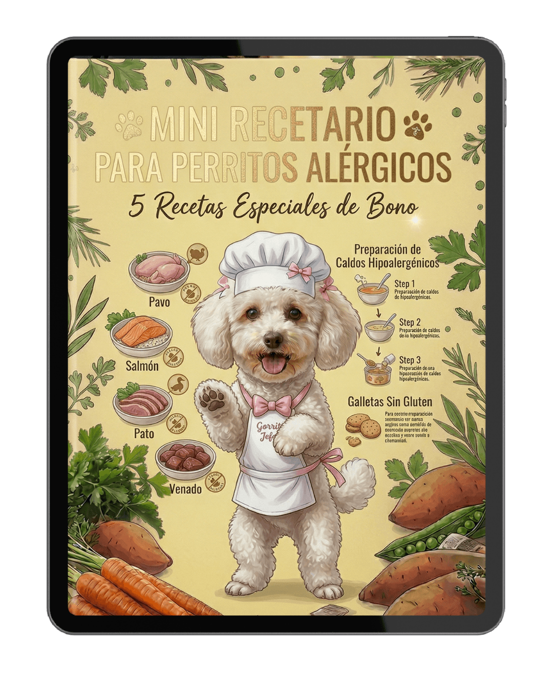 ¡SÍ, perfecto! El Bono #5 es un recetario COMPLETO dedicado SOLO para perritos alérgicos y sensibles (sin pollo, sin arroz, sin gluten, sin lácteos). También hay recetas especializadas para perros senior, problemas digestivos crónicos, sobrepeso, etc. Todo está cubierto.