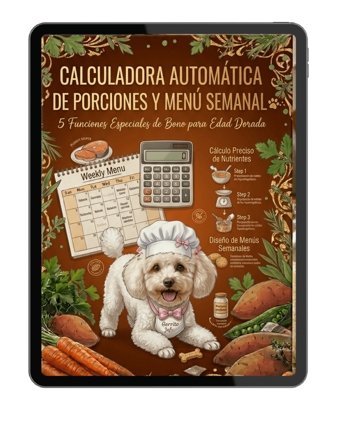 ¡SÍ! Las recetas están diseñadas profesionalmente para perros de TODAS las razas, todos los tamaños y todas las edades. Desde chihuahuas pequeñitos hasta gran danés gigantes. Incluye calculadora automática de porciones según el peso exacto de tu perro.